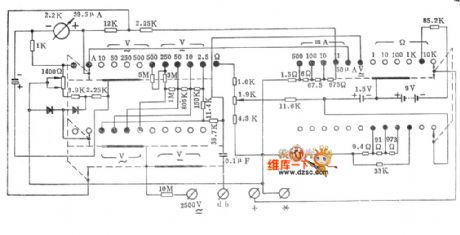The picture shows the 500 type multimeter circuit principle instrumetation circuit. (View)