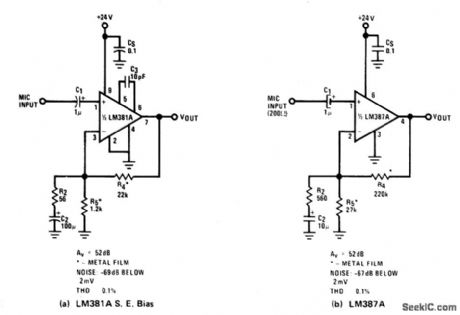 Not much can be said about how the LM382 works as most of the circuitry is contained within the IC. Most of the frequency-determining components are on the chip-only the capacitors are mounted externally. The LM382 has the convenient characteristic of rejecting ripple on the supply line by about 100 dB, thus greatly reducing the quality requirment for the power supply. (View)