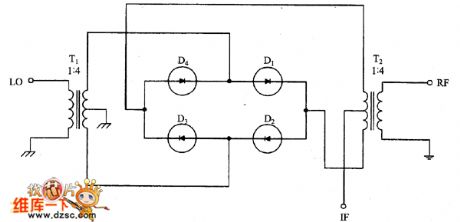 The circuit uses a ring diode mixer with balanced input, output and LO ports. It can achieve isolation between ports of 30 ~ 60dB. In the actual circuit, characteristics are also very good. Double-balanced mixer shown in the figure is widely used in a variety of designs by electronics enthusiasts and amateur radio enthusiasts. Such designs are the direct conversion receiver, single-sideband transmitter and high-performance short-wave receiver. If it is designed well, just a double-balanced mixer can work within a very wide frequency range.