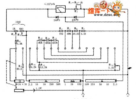 Monolithic 3 1/2-bit automatically converted measuring range digital multimeter circuit diagram composed of ICL7149 3 3 / 4 dual integrating A / D converter is shown as the chart.