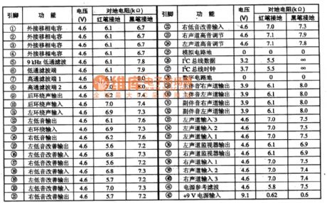 The TDA7429S is in the 42-pin double-row package, the power supply voltage is 9V, and it can be used in Changhong rear projection TV, the pin functions and data is as shown in table 40.