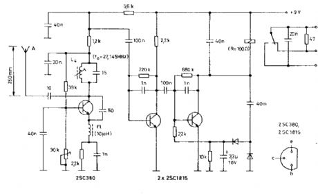 This circuit will be of interest to the radio amateur and anyone posessing two radios, (one of which must be able to transmit i.e. a transceiver). It is a self powered (audio derived) repeater circuit for receiving a signal and re-transmitting it via the other radio. (View)