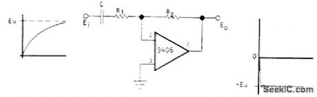 Circuit instantly computes ultimate value of logarithmically in-creasing input signal Ei y performing augmented differentiation that gives step function equal to ultimate value EU, Uses Optical Electronics 9406 opamp. Circuit values are computed from EU = EO = -R2EjR1 – R2Cdej/dt.- Derivative Circuit Indicates Ultimate Value Instantly, Optical Electronics, Tucson, AZ, Application Tip 10179.