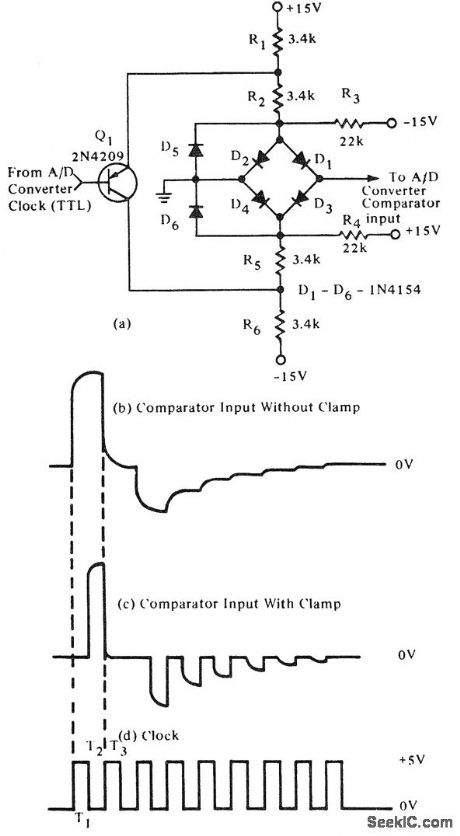 Diode-bridge clamping circuit to improve A/D convener performance (courtesy Burr-Brown Corporation). (View)