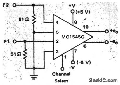 Frequency shift keyer using the MC1545G wide-band amplifier (courtesy Motorola Semiconductor Products Inc.). (View)