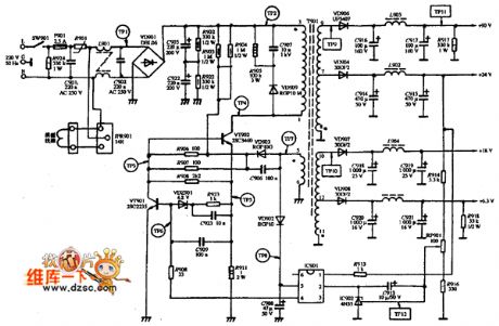 VGA multi-frequency color display GREAT WALL GW-140140H type power supply circuit is shown below.