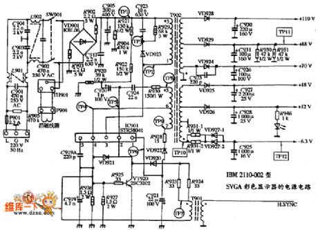 IBM 2110-002 type SVGA color display power supply circuit is shown below.