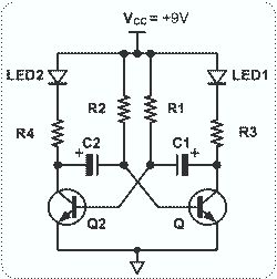 This circuit is basically simple and easy to build, it uses two transistors as active components and a few passive components like resistors, capacitors and two LEDs. The circuit makes use of the MPS2222 transistor. You can use any NPN type transistor as the basis of your circuit provided that, the transistors Emitter-Base Voltage is less than 12V and has a maximum value of 5V. (View)
