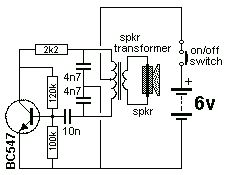 The Colpitts Oscillator is characterised by tapping the mid-point of the capacitive side of the oscillator section. The inductor can be the primary side of a speaker transformer. The feedback comes via the inductor. (View)