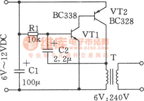 The circuit is shown as the chart, it uses the 6V ~ 12V DC power supply to produce high-voltage pulse. In the circuit, the transistors VTl, VT2 constitute an oscillator to produce a DC pulse voltage with the frequency in 3Hz, and it has the primary coil of booster with the output transformer ratio in 6V: 240V, and after each pulse ends, the secondary coil of corresponding transformer will generate a high voltage level. Pulse repetition frequency can be selected by adjusting C2, Rl. When the circuit is used in the baton, it can use lead-acid batteries.