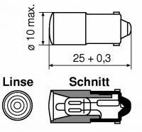 PinoutSpecificationsPart Number: 09122250Serial Number: 0912Housing size: 10x25Housing material: white plasticLens color: clearBase: BA9sLamp color: redOutput voltage (V): 127Volt type (V): ACMax striking volts AC: 95Max striking volts DC: 135Current: 2.5Life time: 25000Voltage tolerance (%): 10%O...