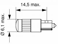 15112450: PinoutSpecificationsPart Number: 15112450Serial Number: 15112Based LED type: MultiLEDSize (inch): T-1 1/2Size (mm): T5Housing Size: 6.1x14.5mmBase: WB (W2x4.6d)Chip number: 6Chip color: redWavelengt...