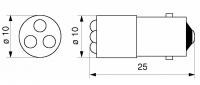PinoutSpecificationsPart Number: 18628137Serial Number: 18628Based LED type: MegaStarLEDSize (inch): T-3 1/4Size (mm): T10Housing Size: 10x25mmBase: BA9sChip number: 3Chip color: blueWavelength (mA): 470Op. voltage (V): 130Rectifier: Protection DiodeAC current: -DC current: 3Type lv DC current: 20...