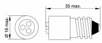 PinoutSpecificationsPart Number: 18636750Serial Number: 18636Based LED type: MegaStarLEDSize (inch): T-5Size (mm): T16Housing Size: 16x35mmBase: E14Chip number: 3Chip color: redWavelength (mA): 630Op. voltage (V): 60V AC/DCRectifier: BridgeAC current: 8mADC current: 8mAType lv DC current: 3 x 200m...