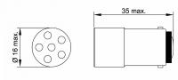 PinoutSpecificationsPart Number: 1864113W3Serial Number: 18641Based LED type: MegaStarLEDSize (inch): T-5Size (mm): T16Housing Size: 16x35mmBase: BA15dChip number: 6Chip color: white clearWavelength (mA): 0.31/0.32Op. voltage (V): 130V AC/DCRectifier: BridgeAC current: 9mADC current: 9mAType lv DC...