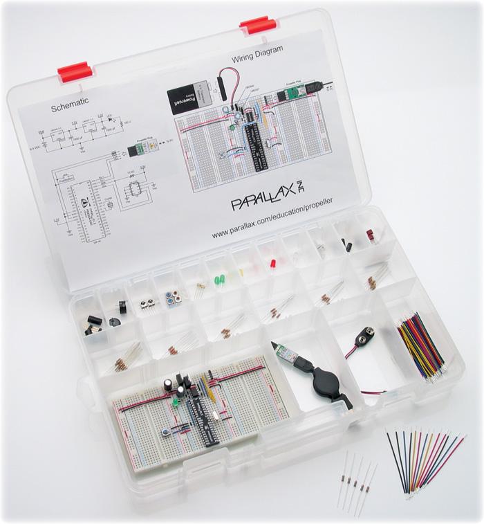 | Contents | Propeller DIP Plus Kit, Prop Plug, PE Kit Project Parts, Breadboards and Storage Box |