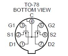Features: DIRECT REPLACEMENT FOR INTERSIL 3N190 & 3N191LOW GATE LEAKAGE CURRENT IGSS ±10pALOW TRANSFER CAPACITANCE Crss 1.0pFPinoutSpecifications@ 25 °C (unless otherwise stated)Maximum TemperaturesStorage Temperature -65 to +150 °COperating Junction Temperature -55 to +135 °CMaximum Power D...