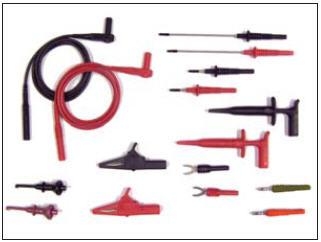 | Contents | 2 ea - 60" test leads,plug-on shrouded alligator,r/a jaw clip,spade lug,test prod w/cage spring banana clip,banana jack-to-plug |