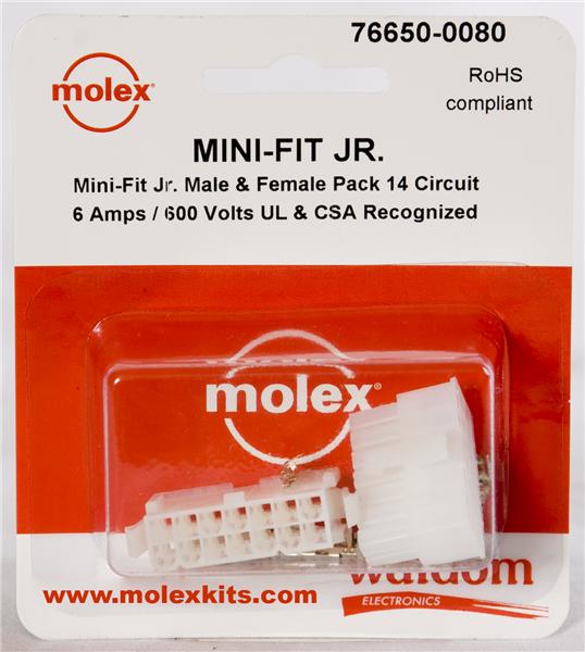 76650-0080: Headers & Wire Housings MiniFit Jr Conn Kit Plug and Rect 14Ckt