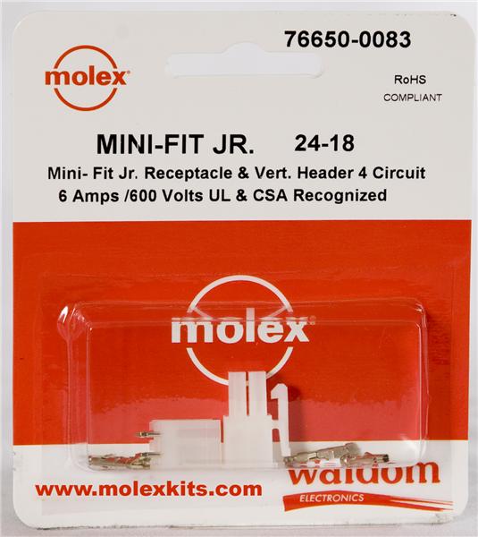 76650-0083: Headers & Wire Housings MiniFit Jr Conn Kit V Hdr Recept 4Ckt