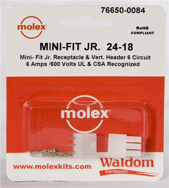76650-0084: Headers & Wire Housings MiniFit Jr Conn Kit V Hdr Recept 6Ckt