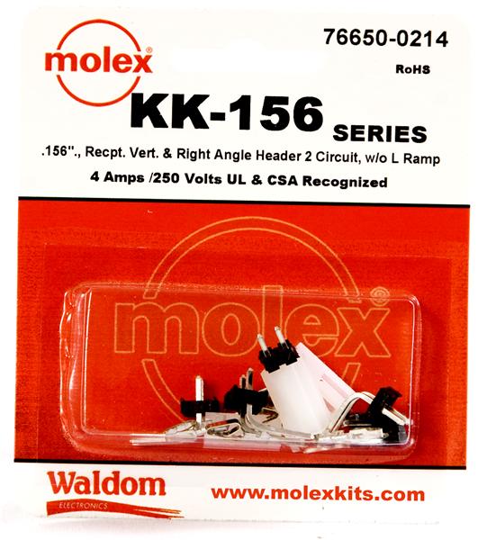 76650-0214: Headers & Wire Housings KK-156 Kit no ramp V & RA Hdr Rec 2Ckt