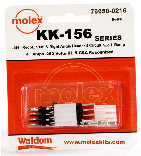 76650-0216: Headers & Wire Housings KK-156 Kit no ramp V & RA Hdr Rec 4Ckt