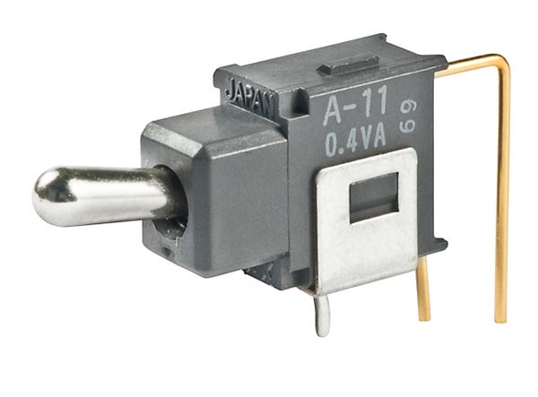 A11JV1-RO: Toggle Switches SPST ON-OFF .248 BAT VERTICAL PC .4VA