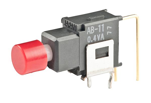 AB11BV-FC-RO: Pushbutton Switches OFF(ON) .201 RED CAP VERTICAL PC .4VA
