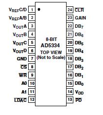 Features: AD5334: Quad 8-Bit DAC in 24-Lead TSSOPAD5335: Quad 10-Bit DAC in 24-Lead TSSOPAD5336: Quad 10-Bit DAC in 28-Lead TSSOPAD5344: Quad 12-Bit DAC in 28-Lead TSSOPLow Power Operation: 500A @ 3 V, 600A @ 5 VPower-Down to 80 nA @ 3 V, 200 nA @ 5 V via PD Pin2.5 V to 5.5 V Power SupplyDouble-Bu...