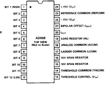 The AD568 is available in three performance grades. TheAD568JQ and KQ are available in 24-pin cerdip (0.3") packagesand are specified for operation from 0 to +70. TheAD568SQ features operation from 55°C to +125 and is alsopackaged in the hermetic 0.3" cerdip.