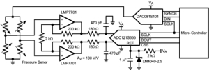 The ADC121S655 is a 12-bit, 200 kSPS to 500 kSPS sampling Analog-to-Digital (A/D) converter that features a fully differential, high impedance analog input and an external reference. The reference voltage can be varied from 1.0V to VA, with a corresponding resolution between 244µV and VA divided by 4096.