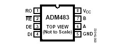 ADM483: Features: EIA RS-485/RS-422-compliant Data rates up to 250 kbps Slew-rate limited for low EMI 100 nA supply current in shutdown mode Low power consumption (120 µA) Up to 32 transceivers on on...