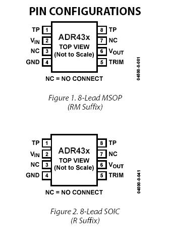 ADR433: Features: Low noise (0.1 Hz to 10 Hz): 3.5 µV p-p @ 2.5 V outputNo external capacitor requiredLow temperature coefficient A Grade: 10 ppm/°C max B Grade: 3 ppm/°C maxLoad regulation: 15 ppm/mA...