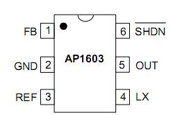 AP1603: Features: -A Guaranteed Start-Up from less than 0.9 V. -High Efficiency. -Low Quiescent Current. -Less Number of External Components needed. -Low Ripple and Low Noise. -Space Saving Pb-Free Packages...