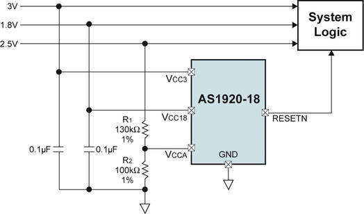 The AS1920 and AS1922 microprocessor supervisory circuits were designed to generate a reset when at least one of the three monitored supply voltages falls below its respective trip threshold.