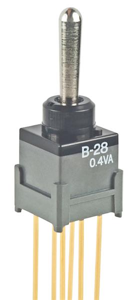 B28AW: Toggle Switches (ON)OFF(ON) .394 BAT EXTENDED PC .4VA
