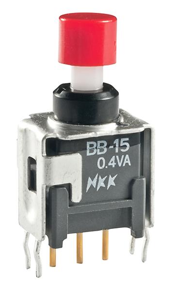 BB15AB-FC-RO: Pushbutton Switches ON-(ON) .201 RED CAP STRT BRKT PC .4VA