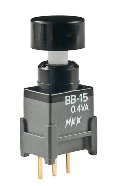 BB15AP-HA: Pushbutton Switches ON-(ON) .295 BLK CAP STRAIGHT PC .4VA