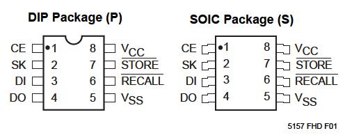 Features: Single 5V Supply Infinite E2PROM to RAM Recall CMOS and TTL Compatible I/O Low CMOS Power Consumption:Active: 3 mA Max.Standby: 30 µA Max. Power Up/Down Protection 10 Year Data Retention JEDEC Standard Pinouts:8-pin DIP8-pin SOIC 100,000 Program/Erase Cycles (E2PROM) Auto Recall on...