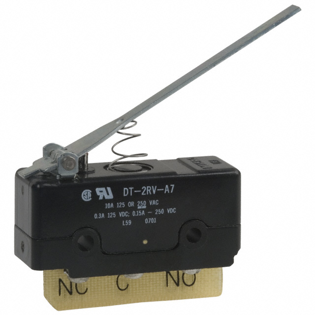 DT-2RV-A7: Basic / Snap Action / Limit Switches 10A 2.5" Flat Lever #4 Screw Term