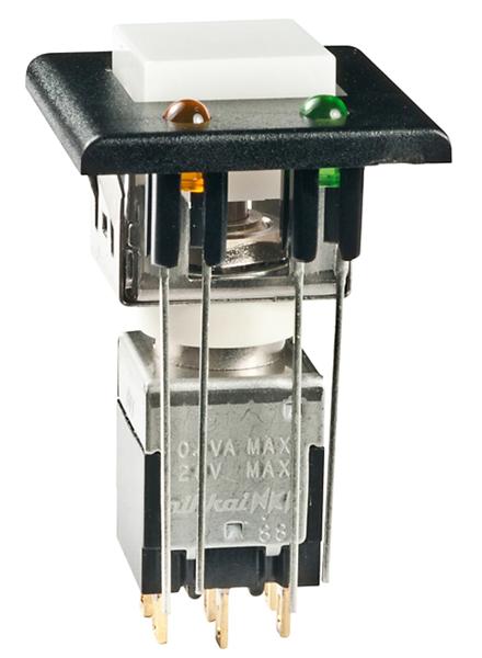 Pushbutton Switches DPDT GOLD CONT WHITE BLK BEZEL YELGRN LED