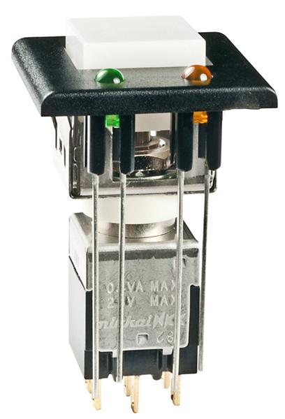 Pushbutton Switches DPDT GOLD CONT WHITE BLK BEZEL GRNYEL LED