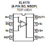 EL5170: Features: •Fully differential inputs and outputs•Differential input range ±2.3V typ.•100MHz 3dB bandwidth at fixed gain of 2•1200V/µs slew rate•Single 5V or dual ...