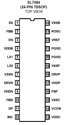 The EL7584 is available in a 24-pin TSSOP package and is specified for operation over the full -40 to +85 temperature range.