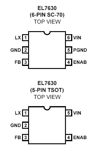 EL7630: Features: • Up to 6 LEDs in series• 27V maximum output• 2.7V to 5.5V input• Up to 86% efficient• 1.35MHz constant frequency• Enable/PWM dimming control• Pb-...