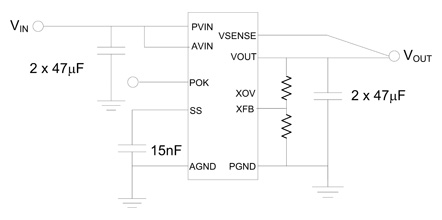 The EN5396QI utilizes a 3-pin VID output voltage selector that allows the designer to choose one of seven pre-defined output voltage levels; or an external voltage divider can be employed to set the output voltage.