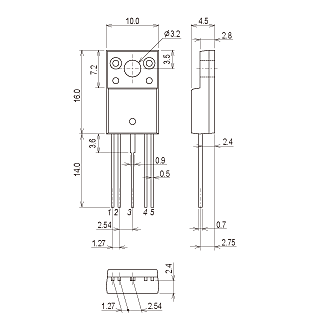 F5H2101: PinoutSpecifications Absolute maximum ratingsVCEO [V]50IC [A]15PC Tc=25°C [W]30 Electrical characteristicshFE min150hFE max450VCE [V]2IC [A]1VCE (sat) max [V]500IC [A]7IB [A]0.35fT typ [MHz...