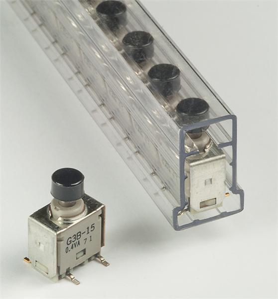 G3B15AP-S-YA: Pushbutton Switches SPDT ON(ON) STRT SMT BLACK CAP STICK-TUBE