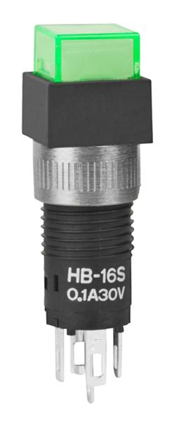 HB16SKW01-5F-FB: Pushbutton Switches SPDT ON-ON SQR GRN
